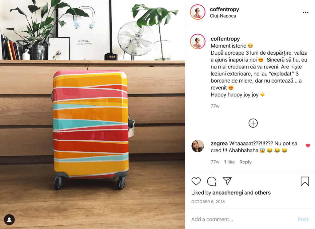 Am scris acest articol cu detaliile tehnice și ce este de făcut în situațiile astea. Big recommend. La noi s-au adunat așadar: valiza pierdută, zbor anulat, valiză pierdută din nou. Știam că putem cere compensații, nu știam ce și cum exact, dar am mers acasă și am zis că mă ocup de asta când ajung.